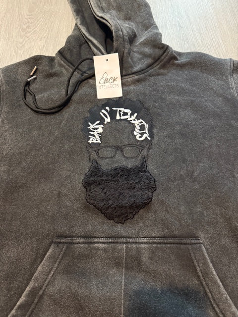 Bearded Guy Logo Sweatsuit/Wide-leg Pants (Sun Washed Black)